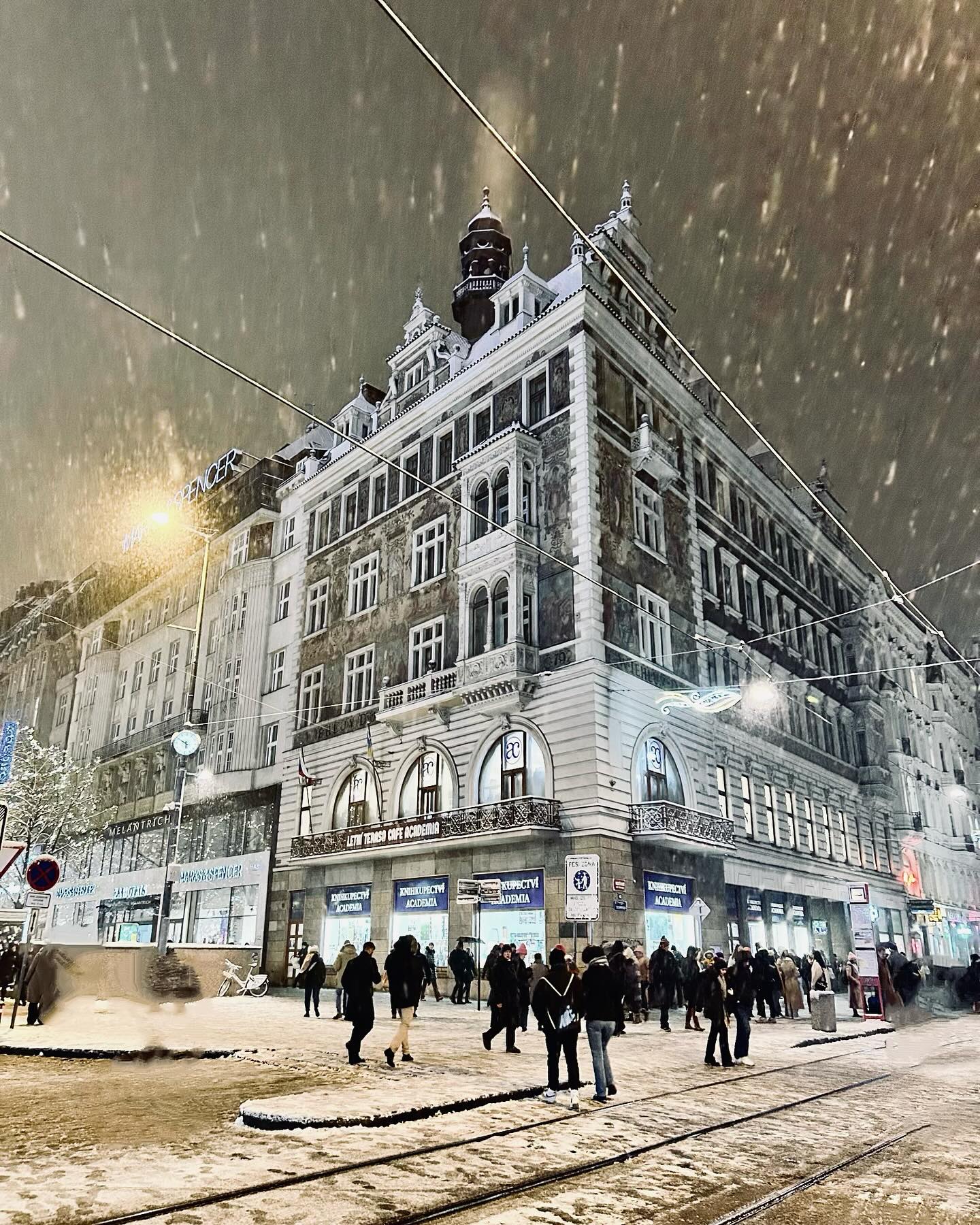 Kavárna a knihovna na Václavském náměstí, je dobře schovaná v prvním patře nad knihovnou, takže není moc rušná. Mají i terasu s výhledem na celé Václavské náměstí.